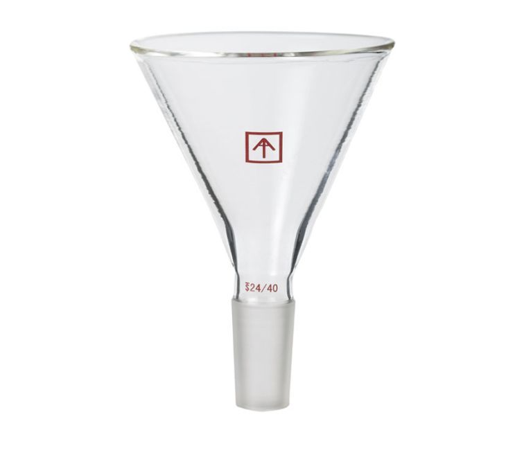 This 24/40 Standard Taper Joint Glass Feeding Funnel is made of high quality borosilicate glass. At 5.5 inches in height, this funnel allows maximum surface area.