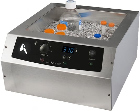 Lab Armor® Beads are eco-friendly and low-maintenance metallic beads that replace the water in existing water baths, aluminum blocks in dry baths, and even ice in ice buckets. The innovative Lab Armor Beads can also be used in containers placed in ovens and incubators to replace sample racks.