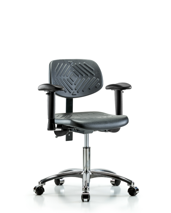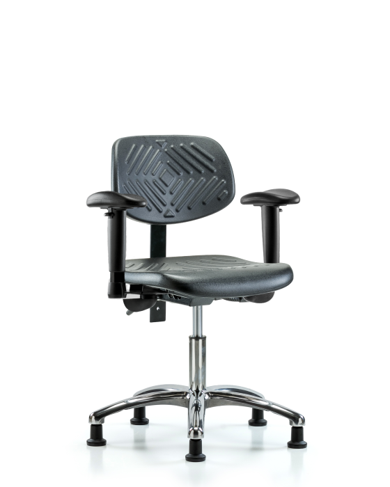 | PDHCH-CR-T1-A1-CC-BLK | Black | No Foot Ring | Polyurethane | Chrome Base, Desk Height | 17 in - 22 in | Pneumatic: 17 in - 22 in |