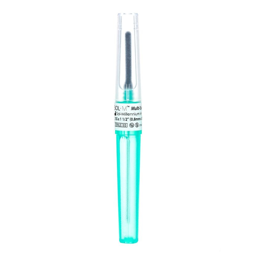 Blood collection becomes easier and more efficient using Sol-Millenium multi-sample needles. These needles are designed for collecting samples in multiple vacuum tubes. Color-coded caps and hubs make it easy to identify needle gauge size. For use with all standard holders and available in different needle lengths and gauges by pack or case.