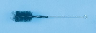 Specially sized for the extra narrow neck of Babcock milk test bottles. The short dense bristles along the stem provide close scrubbing to help remove butterfat residue. The Natural black bristles twisted into a wire handle with hanging loop
