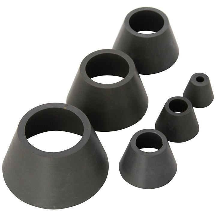 The support set is constructed from durable, high-quality Neoprene rubber, which offers superior chemical resistance and flexibility. This material ensures an airtight seal between the glass filtering flask and the Buchner funnel, which is critical for maintaining vacuum efficiency. The set includes seven different size adapters, ranging in height from 21 mm to 45 mm, ensuring you have the correct piece for virtually any funnel or flask neck you use. This versatility and durability make it a reliable and cost-effective addition to your filtration hardware.