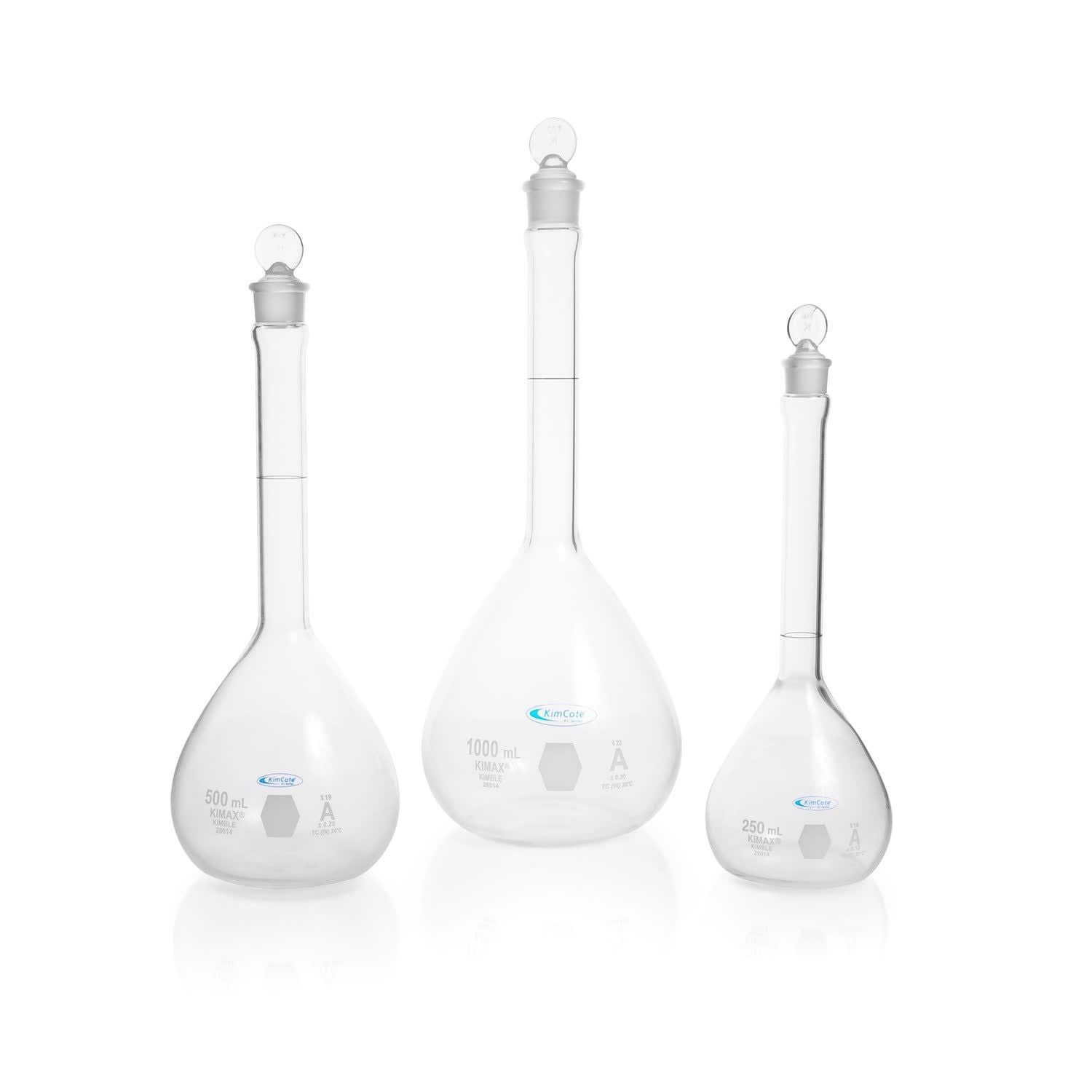 KIMBLE® KIMAX® KimCote® Volumetric Flasks with ST Glass Stoppers, Class A