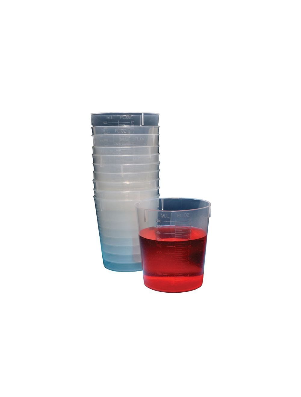 Polypropylene beakers are highly flexible - a gentle squeeze creates a spout anywhere on the rim. Stacking the ribs prevents the beakers from sticking together. Autoclavable.