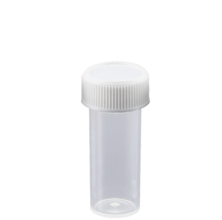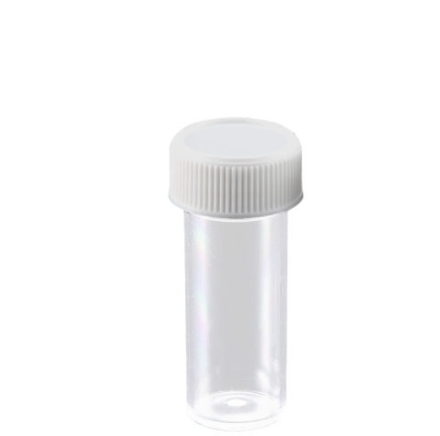 MTC's 7mL Specimen Vials are supplied in translucent, virgin polypropylene or crystal clear virgin polystyrene. Both versions are supplied with an attached polyethylene screw cap. They are CE marked and certified leak proof. Packaged 700 vials with attached caps per case.