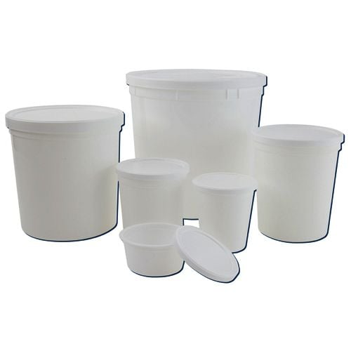 Supplied with tough, tight-fitting LLDPE lids for a secure seal