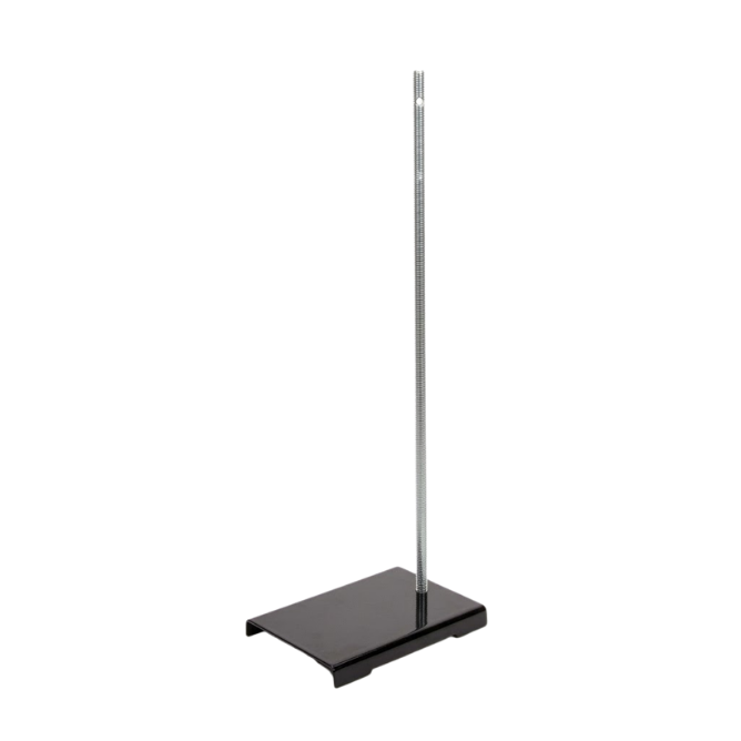 The Support Stands with Rods from United Scientific are the backbone of any chemistry or biology setup. Whether you are performing a titration, supporting a separatory funnel, or mounting a thermometer, these stands provide a heavy, reliable foundation. The bases are constructed from stamped steel and finished with a chemical-resistant black enamel, providing both weight for stability and protection against laboratory spills. Each stand includes a removable, zinc-plated steel rod that threads securely into the base, offering a smooth surface for mounting various clamps and rings.