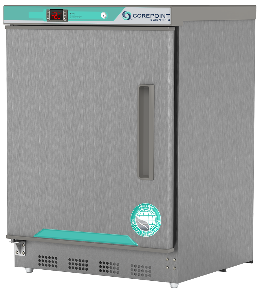 Built-In Undercounter Manual Defrost Stainless Steel Freezers feature a microprocessor temperature controller and digital display, allowing for precise temperature control, verification, and recovery versus mechanical-style thermostats. Critical samples are security-backed with an extensive package of audible and visual alarms.