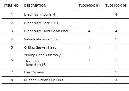 Service kits designed specifically for the PILOT3000 chemical-resistant vacuum pump