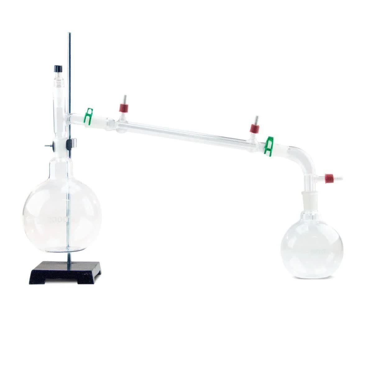 - Precision Adapters: Includes a 3-way 24/40 distilling adapter (connecting the column, condenser, and thermometer), a 105° bent 24/40 adapter for receiving the distillate, a thermometer adapter