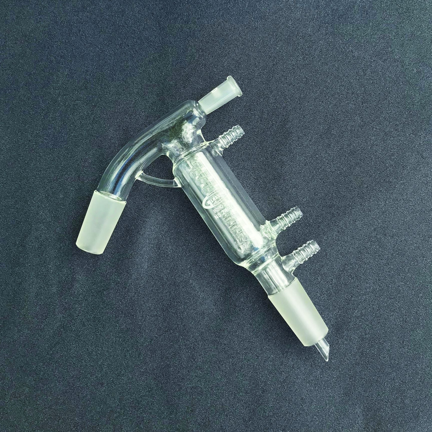 This United Scientific Short Path Distillation Head is manufactured from high quality 3.3 borosilicate glass and features a condenser coil and three 1/4” hose nozzles, two for condenser and one for vacuum.