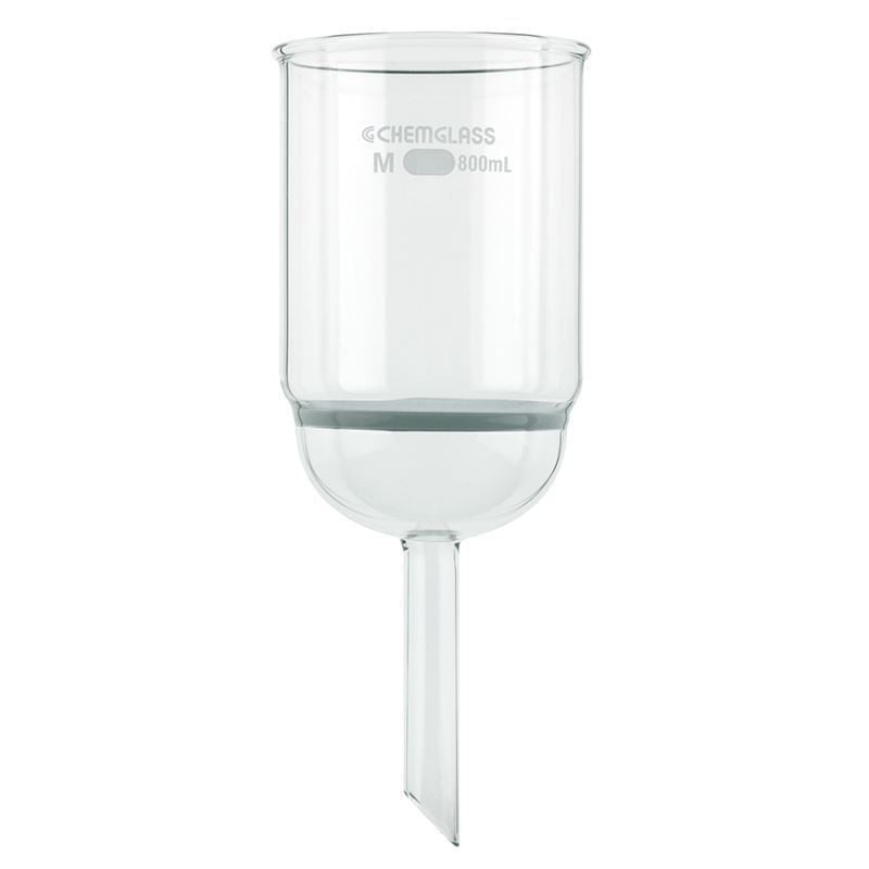 The Extra-Capacity Buchner Filter Funnels from Chemglass have a sealed-in glass fritted disc. It has heavy-wall stems and the top if beaded for additional strength. The extended height above the disc offers extra-capacity.