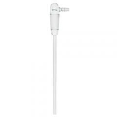 The Inlet, 90° Inner Joint Adapters allow introduction of reactants below the interior surface. The hose connection has an outer diameter of 10mm at the largest serration and is bent downward at a 90° angle to the inner joint.