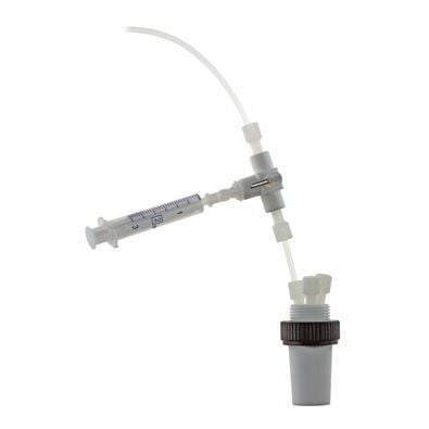 Complete adapter is supplied with 90° valve, 3-port 24/40 PTFE Adapter and 10ft of 1/8” OD PTFE tubing.
