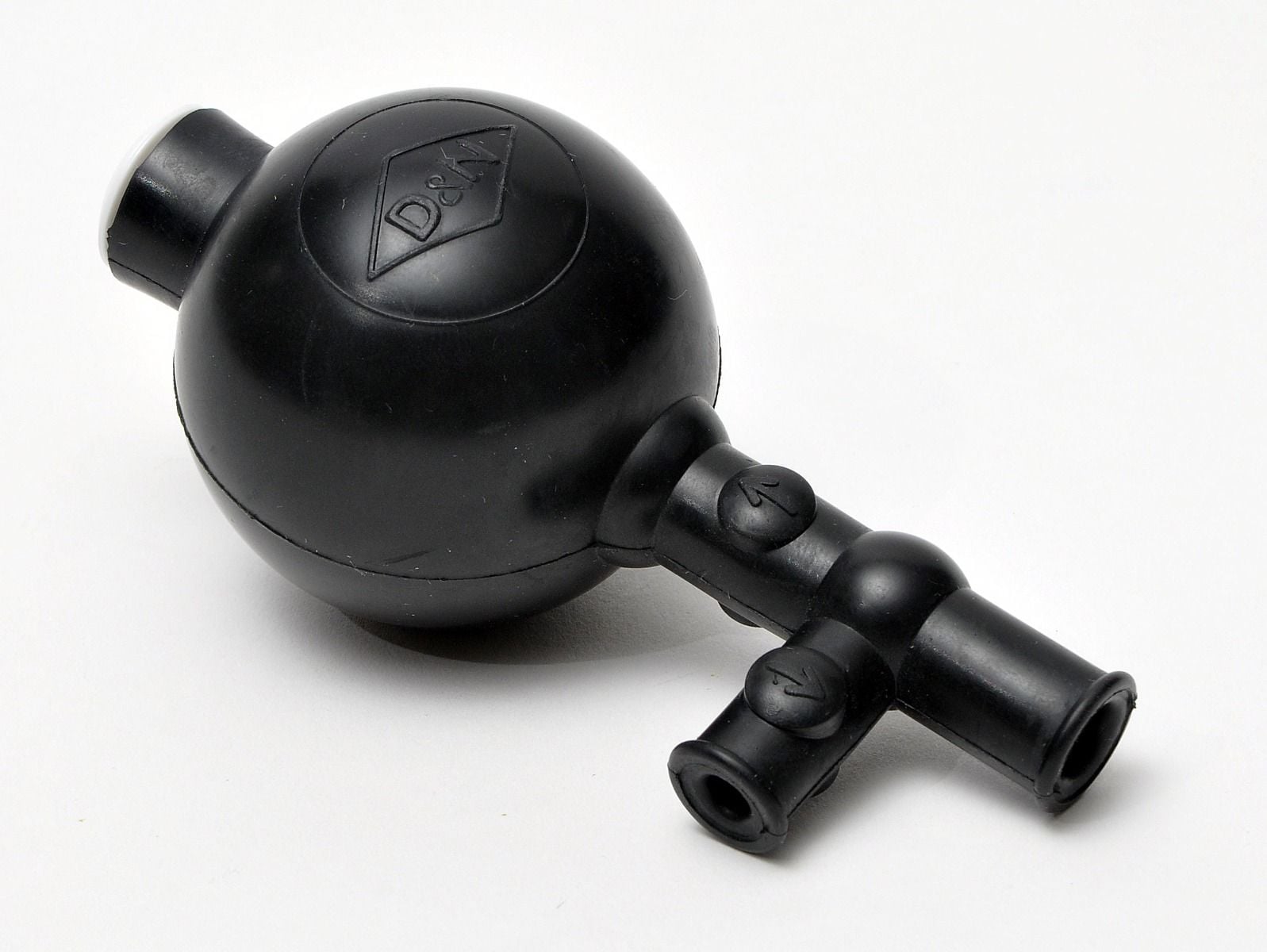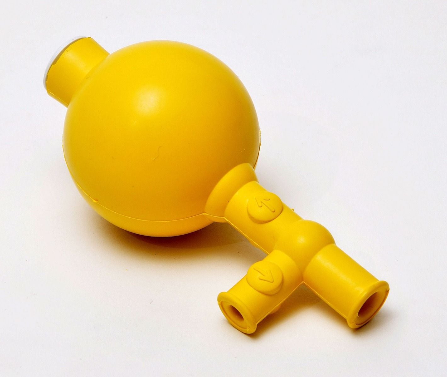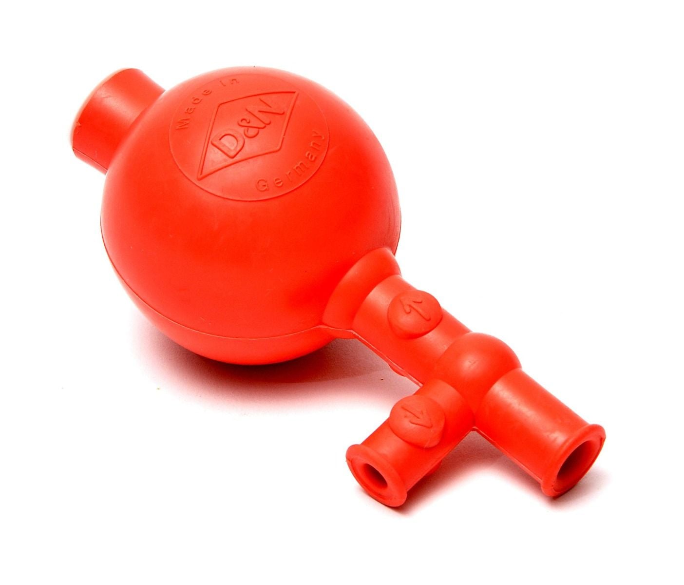 Press button "A" at top of filler and squeeze bulb to evacuate air from the bulb