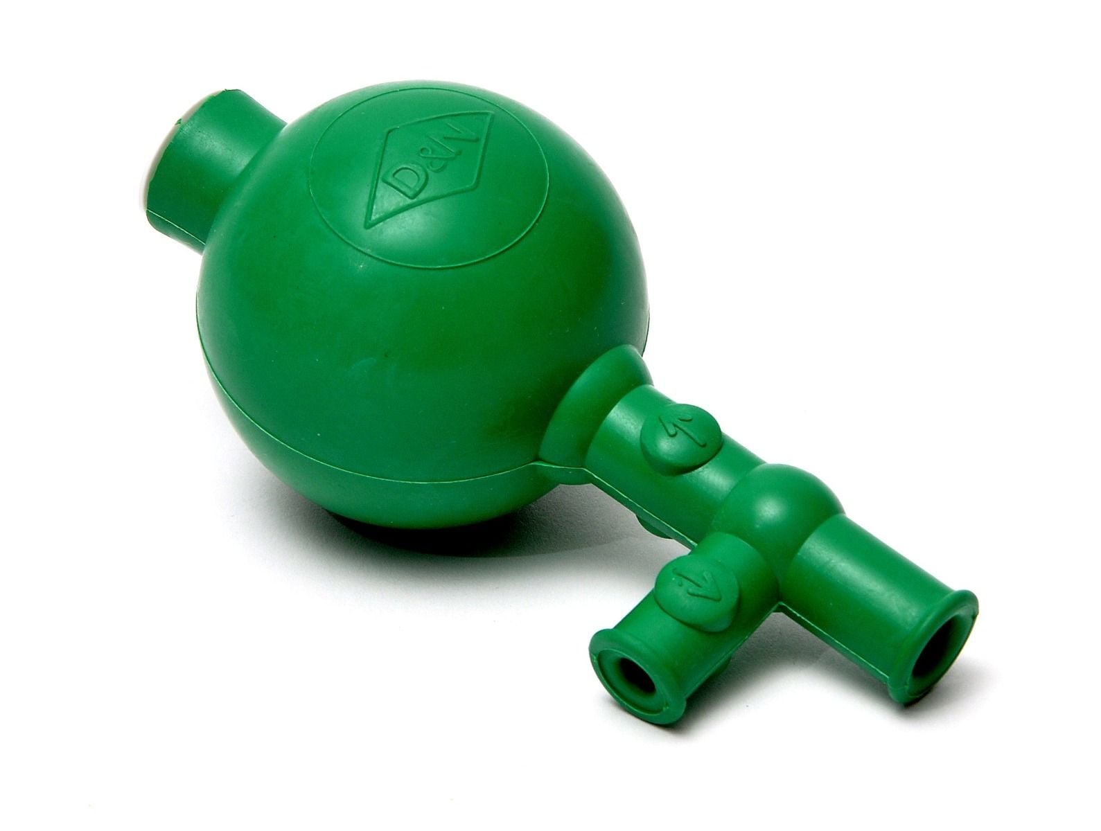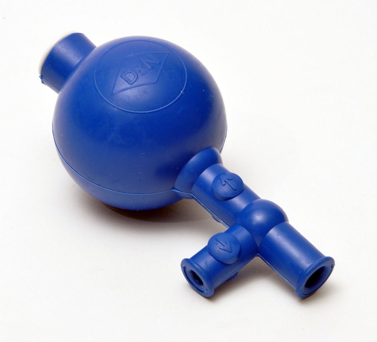The pipette filler can accommodate 50 mL with it's 1/4 inch diameter opening featuring a two valve system. The top is removable for easy cleaning and one handed use.