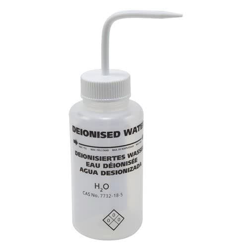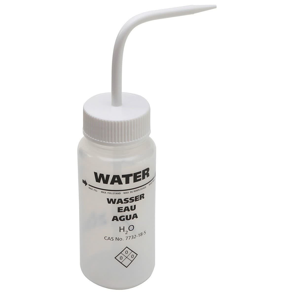 High quality wash bottles are supplied in flexible natural polyethylene with wide neck polpropylene spout closures. The wide neck offers easy spill-free filling, and the acute angled, precision molded dispensing spout ensures a consistent downward pointing jet. Wash bottles are supplied in shrink-wrapped packs of five. All feature S.P.I. recyclihg codes on their base. Maximum temperature of LDPE is 80ºC.