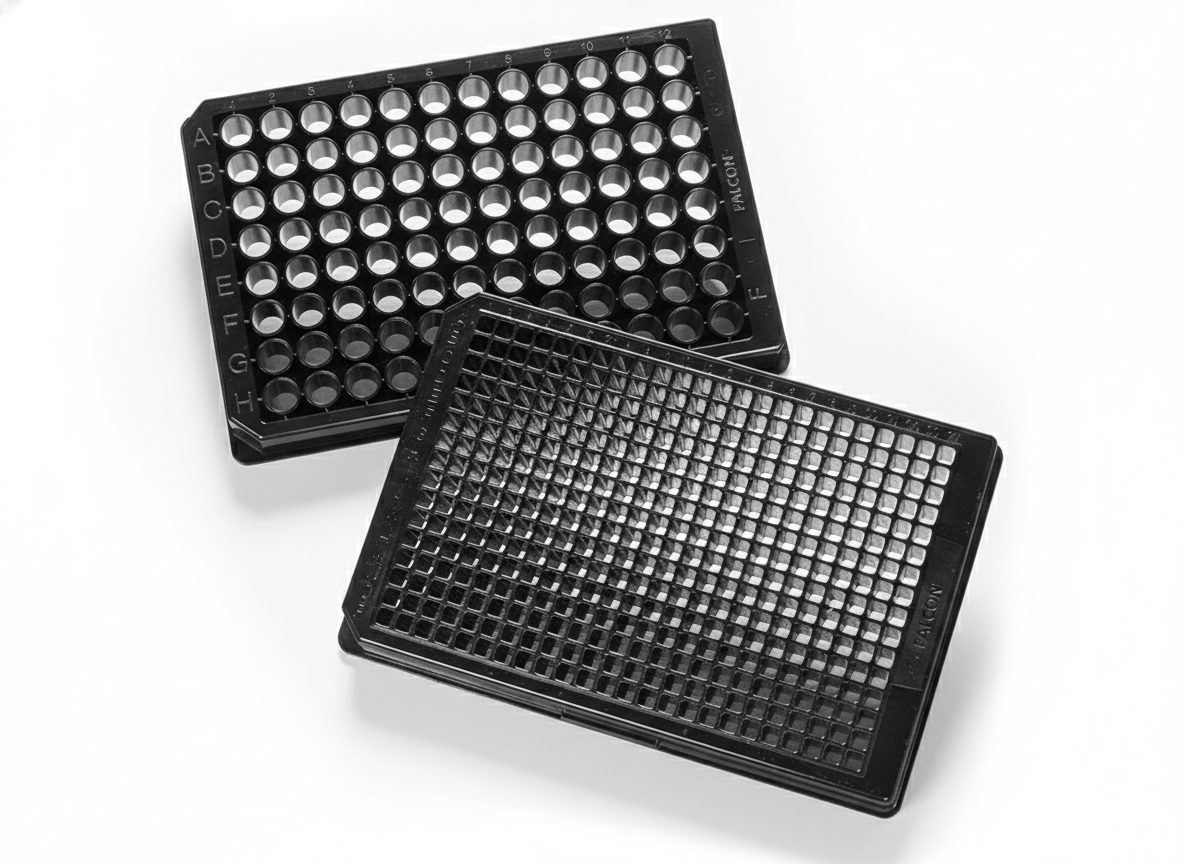 The optically clear flat bottoms are up to 60% thinner than conventional polystyrene microplates, reducing background fluorescence and enabling accurate readings down to 340 nm. Opaque sidewalls minimize well-to-well cross-talk, while the crystal-grade, virgin polystyrene construction ensures excellent optical clarity for direct microscopic observation and advanced imaging workflows. Available in multiple colors, well bottom geometries, and surface treatments including non-treated, standard tissue culture (TC), and Corning® Primaria™ Falcon® 96-well Microplates offer exceptional versatility. Gamma irradiation sterilization, nonpyrogenic manufacturing, and automation compatibility make these plates a dependable choice for both routine and high-throughput laboratory environments.