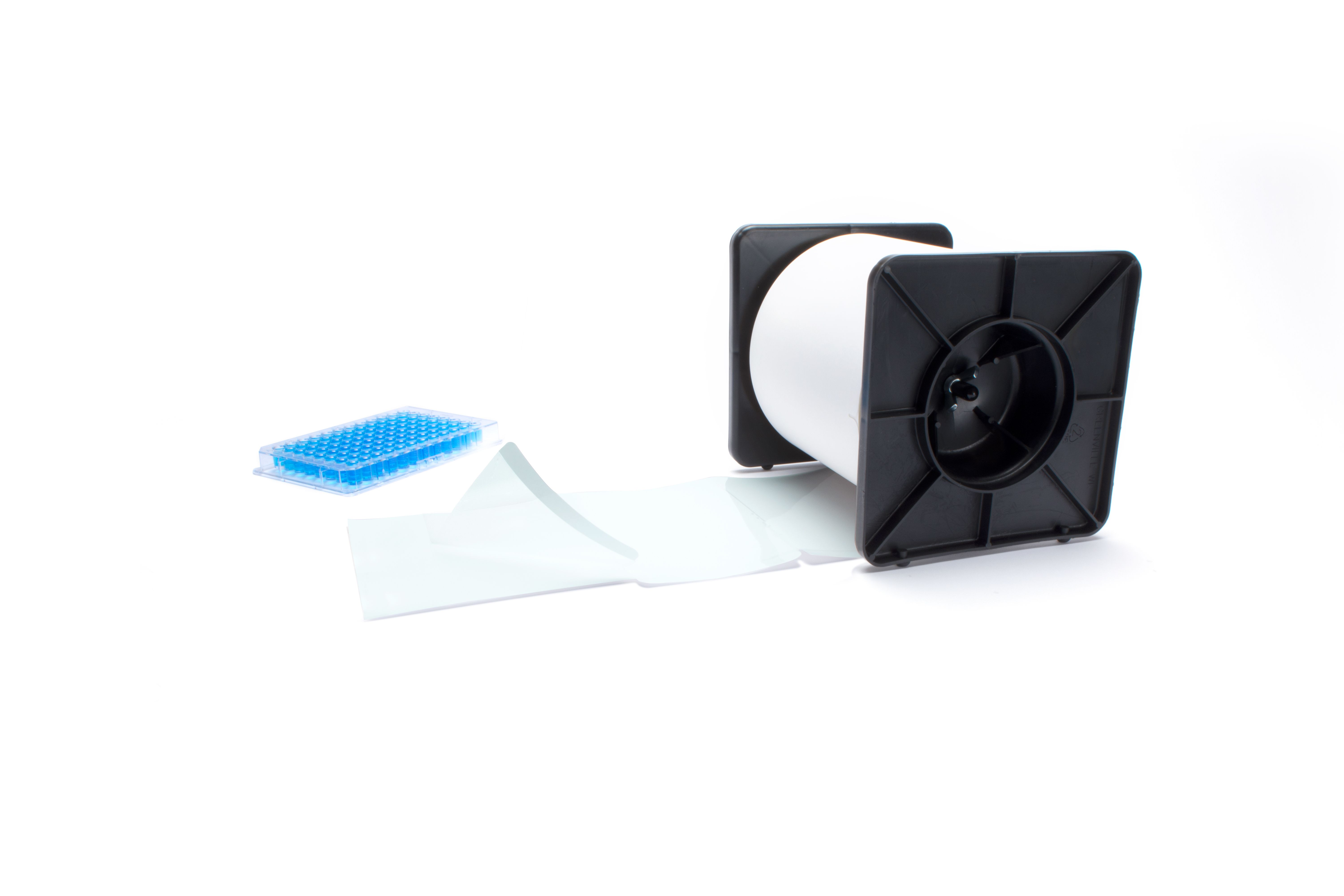 Pre-scored film on a roll is a more economical and efficient alternative to rapidly seal microplates or racked test tubes; faster than applying single sheeted film.