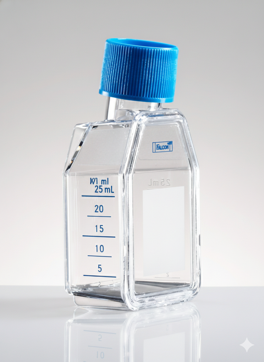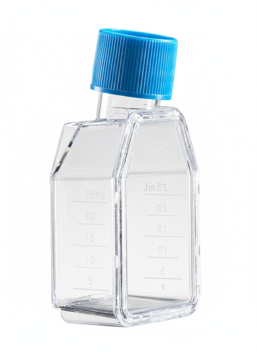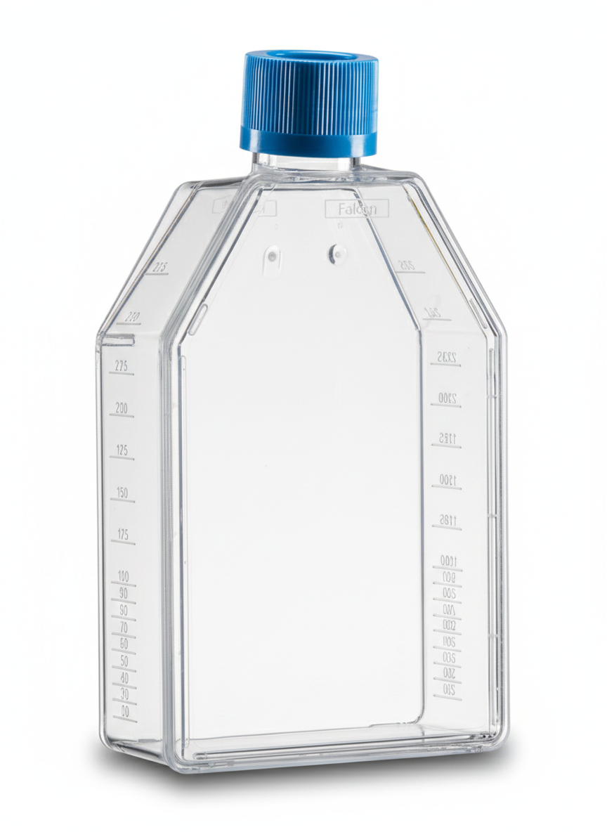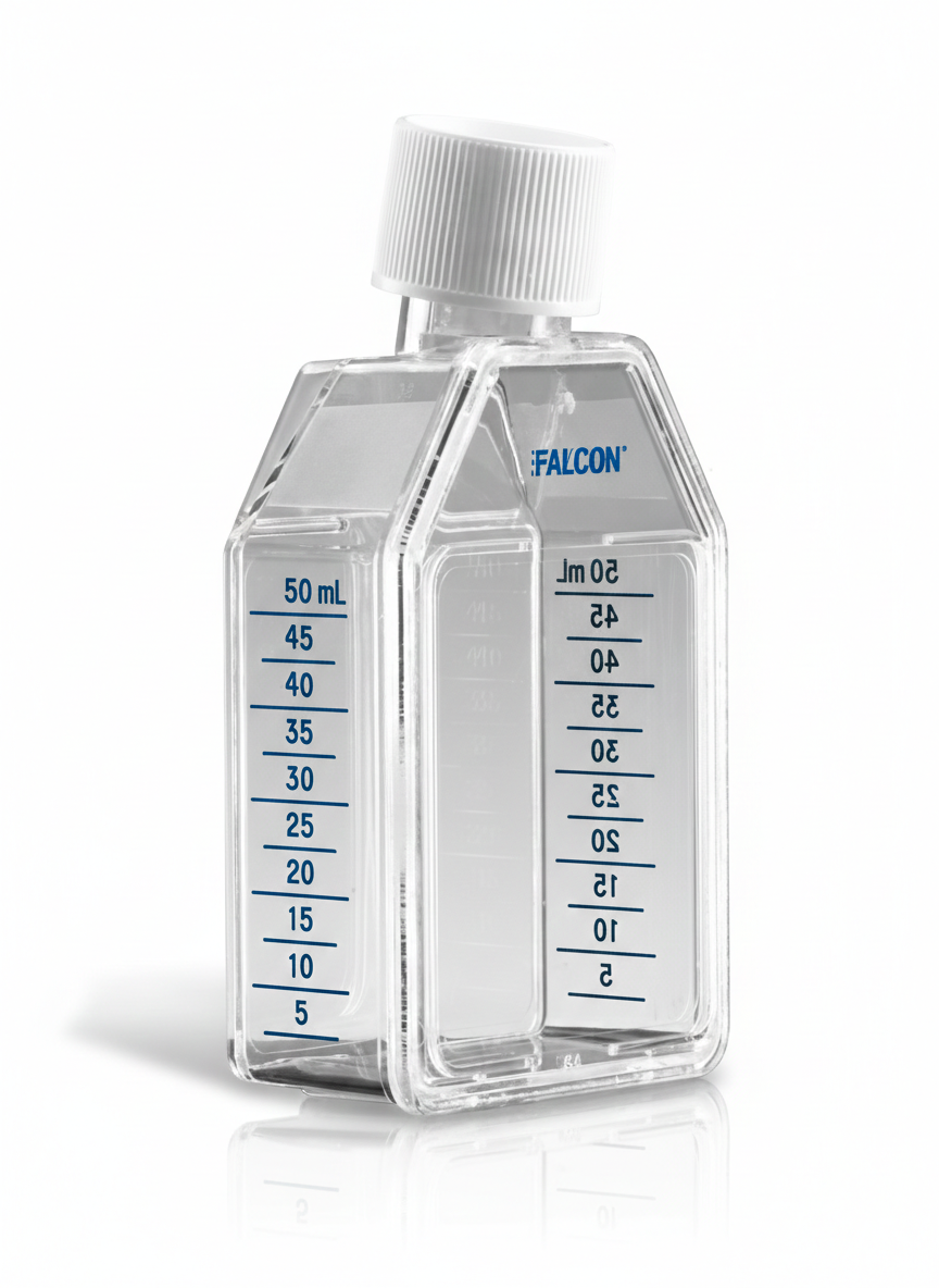 Rectangular straight-neck flasks feature secure stacking to prevent accidental tipping and minimize contamination. Vented caps incorporate a 0.2 µm hydrophobic membrane for optimal gas exchange while maintaining sterility, and plug-seal caps provide a secure, leak-resistant closure. Gamma-irradiated and nonpyrogenic, each flask also includes volumetric graduations and a writing patch for easy monitoring of media volumes. Falcon® Cell Culture Flasks combine durability, convenience, and performance to support reproducible cell culture, organ culture, and advanced experimental workflows.