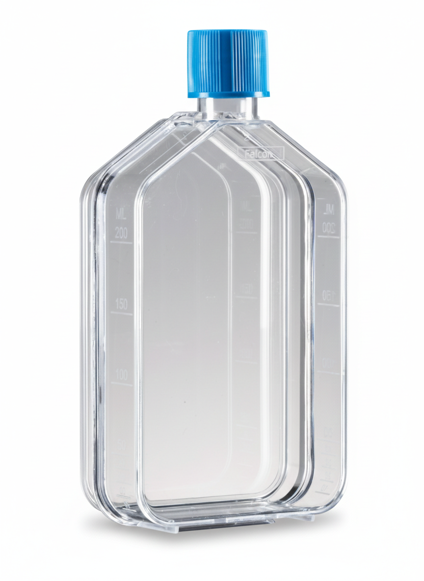Rectangular straight-neck flasks feature secure stacking to prevent accidental tipping and minimize contamination. Vented caps incorporate a 0.2 µm hydrophobic membrane for optimal gas exchange while maintaining sterility, and plug-seal caps provide a secure, leak-resistant closure. Gamma-irradiated and nonpyrogenic, each flask also includes volumetric graduations and a writing patch for easy monitoring of media volumes. Falcon® Cell Culture Flasks combine durability, convenience, and performance to support reproducible cell culture, organ culture, and advanced experimental workflows.