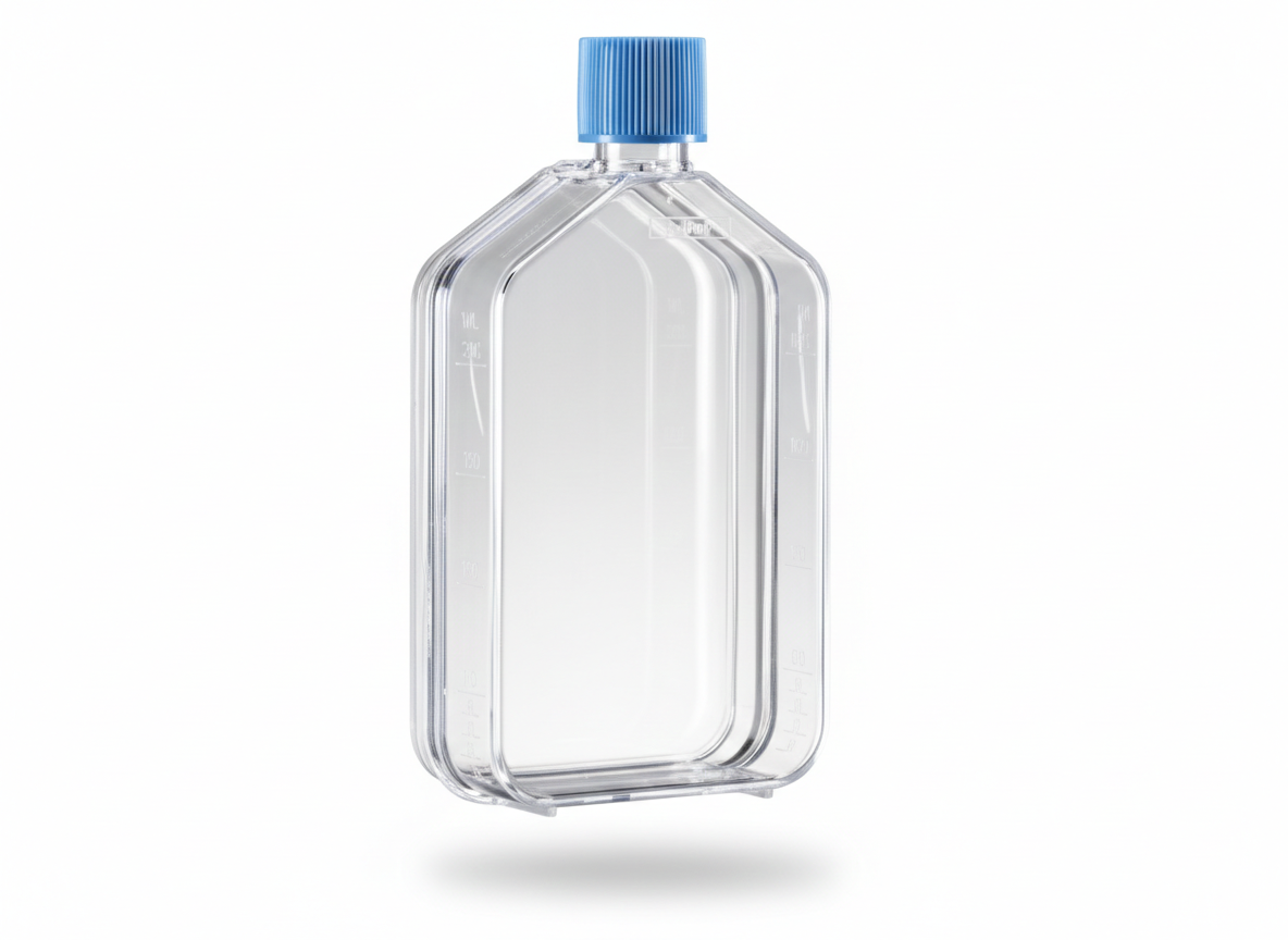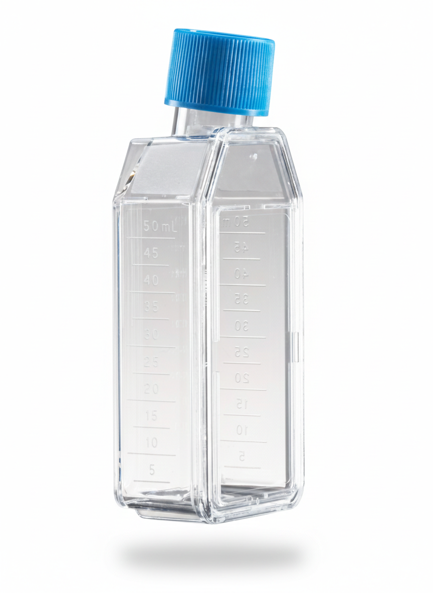 | 353813 | 20 mm | 25 cm² | Vented Screw Cap | Blue | Rectangular | Straight | Polystyrene | Clear |