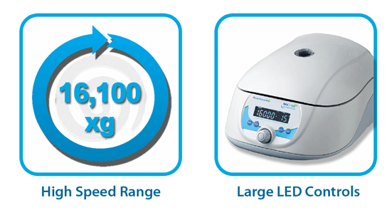 Benchmark’s MC-12™ High Speed Microcentrifuge is the first and only compact microcentrifuge capable of achieving centrifugal speeds up to the critical threshold of 16,000 xg, often held as the standard for many molecular biology/DNA protocols. It’s brushless, maintenance free drive system makes it powerful, yet compact enough to allow each work station to be fully equipped with a personal centrifuge.