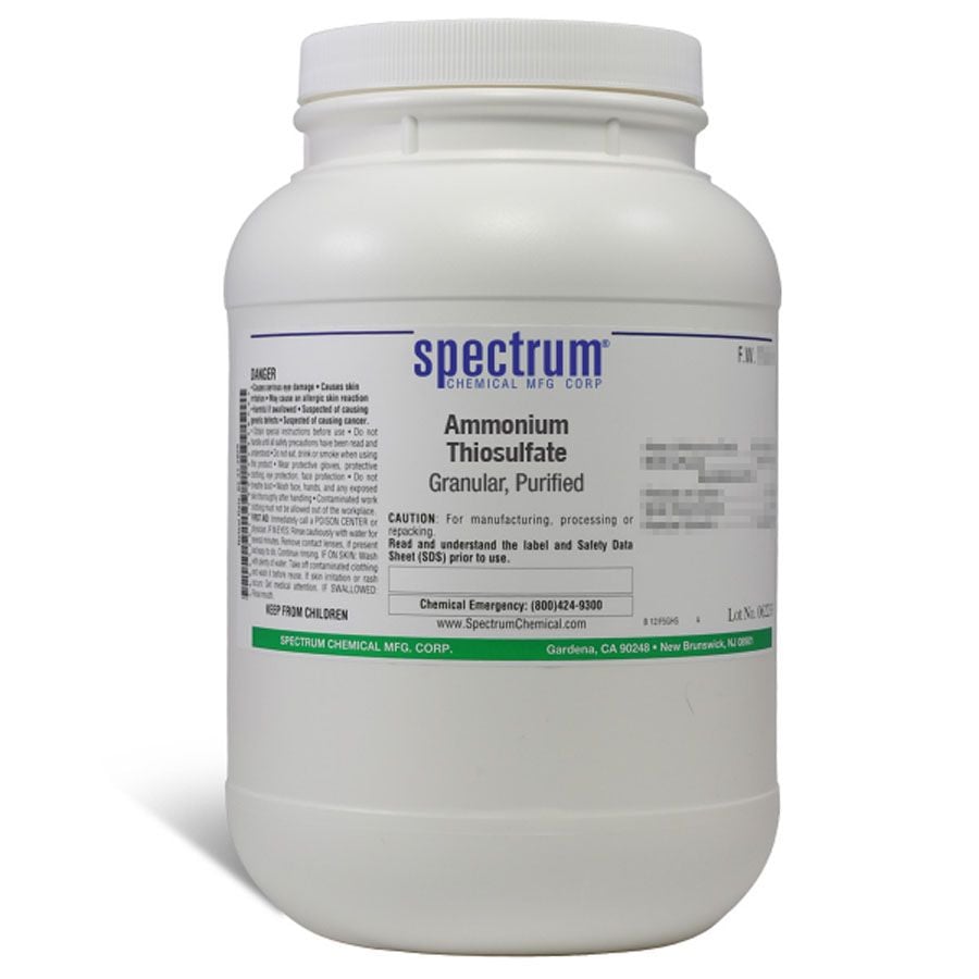 Ammonium Thiosulfate, Granular, Purified, also known as ammonium thiosulphate, is typically used in photographic fixer. The Purified Grade describes chemicals of good quality where there are no official standards and is normally limited to inorganic chemicals.