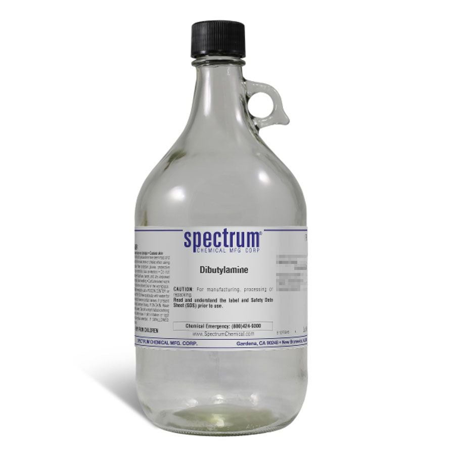 Choose the highest quality solutions and chemicals from Spectrum Chemical. Shop Dibutylamine is an amine and most commonly used as a corrosion inhibitor and used in the manufacture of emulsifiers. Ungraded products supplied by Spectrum are indicative of a grade suitable for general industrial use or research purposes and typically are not suitable for human consumption or therapeutic use.