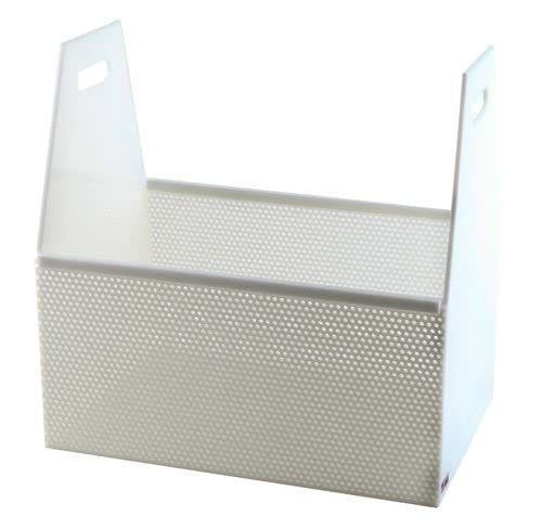 Fabricated of highd ensity polyethylene with 1/8" thick walls, 3/16" diameter perforations on 5/16" centers. Convenient rectangular shape easily fits into standard tanks. Excellent for washing, pickling or dipping into corrosive liquids. Supplied with perforated bottoms and sides and solid ends.