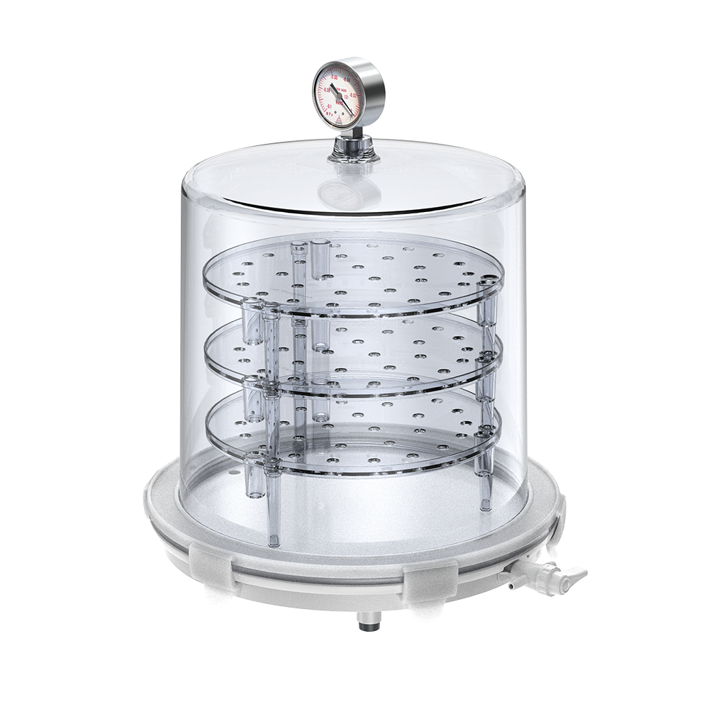 JeioTech cylindrical vacuum desiccators are ideal for storing tall equioment due to their spacious design. Their cylindrical shape makes them practical choice for laboratories needing to accommodate various types of scientific instruments.
