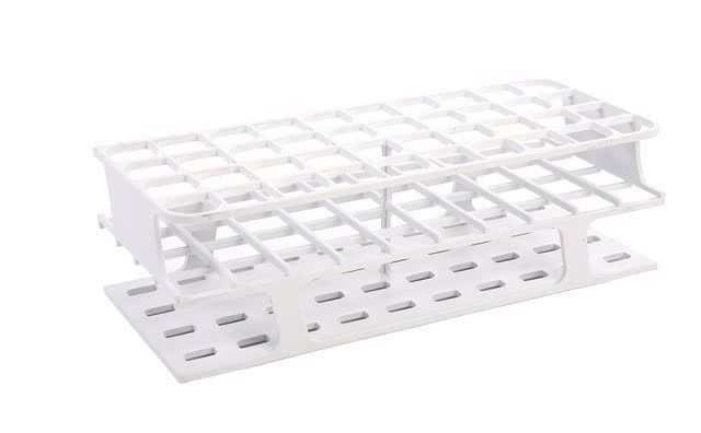These autoclavable racks are molded in a single, continuous piece-assembly required and no detachable pieces. Racks are made of Delrin® fiberglass-reinforced polyoxymethylene (POM), an engineering polymer developed by duPont to have exceptional chemical and heat resistance. Includes molded-inindex coordinates and flat areas for labeling. Will not float. Pack of 8.