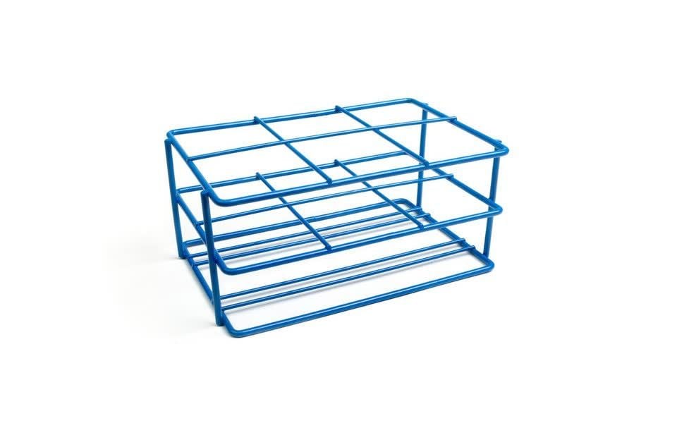 Epoxy-coated steel wire rack is ideal for conical bottom centrifuge bottles that can not stand by themselves. Will accommodate round bottom tubes as well. Bottom rails hold bottles securely upright. Holds bottles up to 250mL (60mm diameter). Autoclavable.