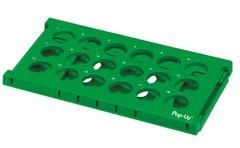 The Pop-Up Tube Rack is designed to be a space-saving item. When not needed, this item collapses to be stored away, and is easy to pull out and open when needed. The racks are able to be stacked when collapsed or expanded, and it features imprinted grids to aide quick retrieval. These racks store 15-50 mL tubes.