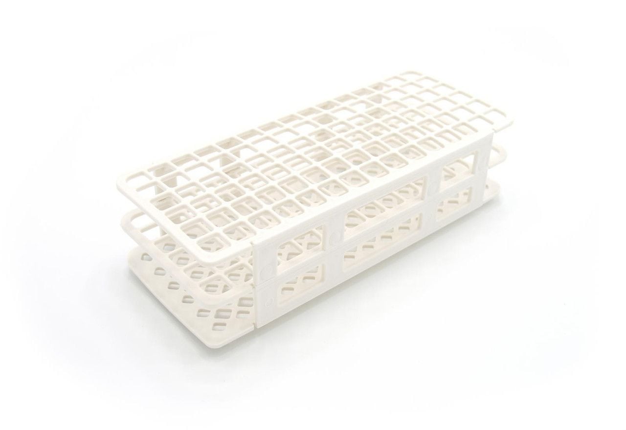 The Fold & Snap Tube Rack is an autoclavable and easy-to-assemble tube rack. This item ships flat and folds and snaps together. It can be used in water baths and features an open design to allow samples to be incubated at the same temperature. This item holds 5-10 mL tubes and can fit up to 90 tubes.