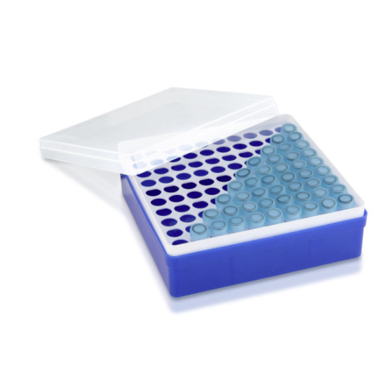 These tube boxes have a removable white tube tray that can be kept filled with crushed ice or other temperature controlling materials. They also have a translucent cover. Temperature sensitive samples and assays in microtubes can be processed with an extra degree of temperature stability. Suitable for use with screw cap or snap cap microtubes from 0.5mL to 1.5/2.0mL Supplied 6 boxes per pack.