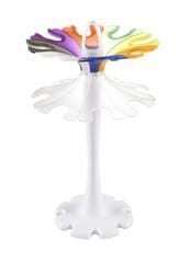 Hold and store pipettes in style with the new universal carousel pipette stand that holds up to 8 single channel, 4 multi channel, or a combination of both pipettes. A sleek and modern design enables this stand to securely hold virtually every known brand of pipette in the marketplace making it truly "universal" while adding a pop of color to a bench top. Inserts on the upper holders (included) can be added or removed to accommodate the fit of different of pipette widths. One handed removal or replacement of pipettes is made easy with a rotating head and stable weighted base. Moving the stand while keeping pipettes in place is simple with a quick grip handle allowing a user to grab and go. The pipette stands come with additional upper leaves to enable multiple color coding configuration options as well as a change in color to your work space.
