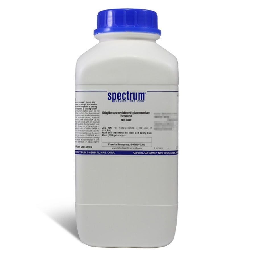 Choose the highest quality solutions and chemicals from Spectrum Chemical. Shop Ethylhexadecyldimethylammonium Bromide, High Purity is a quaternary ammonium compound (QAC) commonly used as a cationic surfactant. The High Purity grade denotes that this chemical is the highest quality commercially available. Spectrum Chemical manufactured High Purity grade products meet the toughest regulatory standards for quality and purity.
