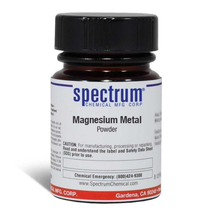 Choose the highest quality solutions and chemicals from Spectrum Chemical. Shop Magnesium Metal, 100 Mesh, Powder is an alkaline earth metal and burns with a brilliant white light and is used in pyrotechnics, flares and photographic flashbulbs. Ungraded products supplied by Spectrum are indicative of a grade suitable for general industrial use or research purposes and typically are not suitable for human consumption or therapeutic use.