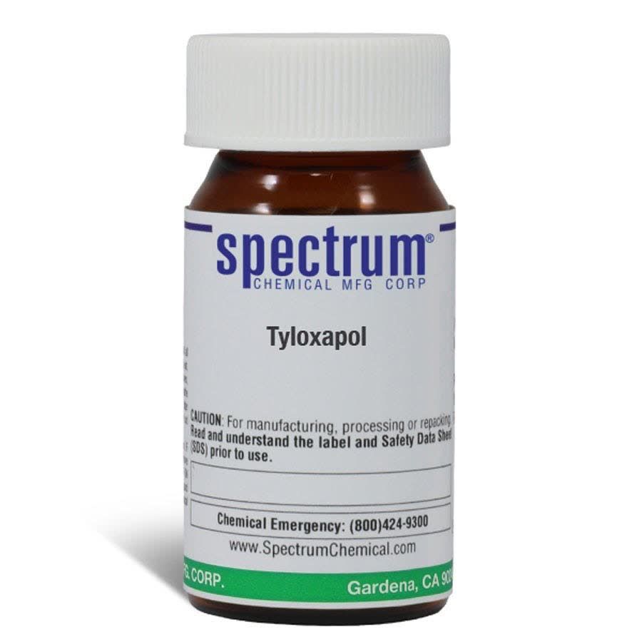 Tyloxapol is a liquid polymer that is nonionic and of the alkyl aryl polyether type. Tyloxapol is used as a surfactant, detergent, dispersing agent, encapsulating agent and hydroxy radical scavenger. It is a non-ionic liquid polymer that is soluble in polar and non-polar solvents.