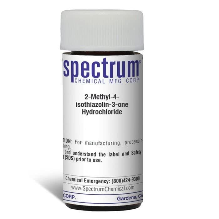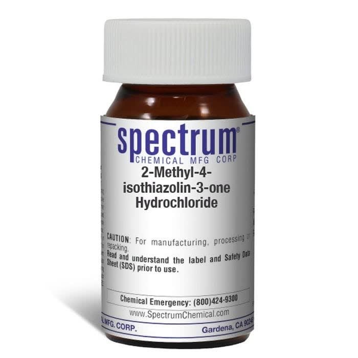 Choose the highest quality solutions and chemicals from Spectrum Chemical. Shop 2-Methyl-4-isothiazolin-3-one Hydrochloride is used for its antibacterial properties. Ungraded products supplied by Spectrum are indicative of a grade suitable for general industrial use or research purposes and typically are not suitable for human consumption or therapeutic use.