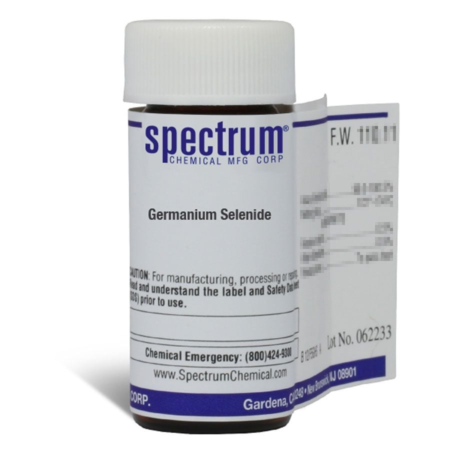 Choose the highest quality solutions and chemicals from Spectrum Chemical. Shop Germanium Selenide, also known as germanium(II) selenide, is a chemical compound which has orthorhombic crystal symmetry. Ungraded products supplied by Spectrum are indicative of a grade suitable for general industrial use or research purposes and typically are not suitable for human consumption or therapeutic use.