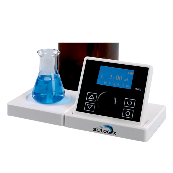 The iTrite Electronic Digital Motorized Bottletop Burettes from SCILOGEX make the titration process safer and more accessible. Unlike traditional titration methods, these electronic units do not require a skilled technician, and the user is safeguarded by removing manual filling. They can be used in the field, under a fume hood, or on the production line for improved flexibility. These devices feature an easy-to-read LED display with a user-friendly interface. With the press of the button, the iTrite will begin accurately dispensing, allowing the user to walk away to complete other tasks.