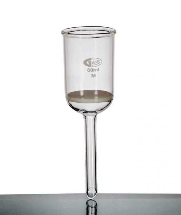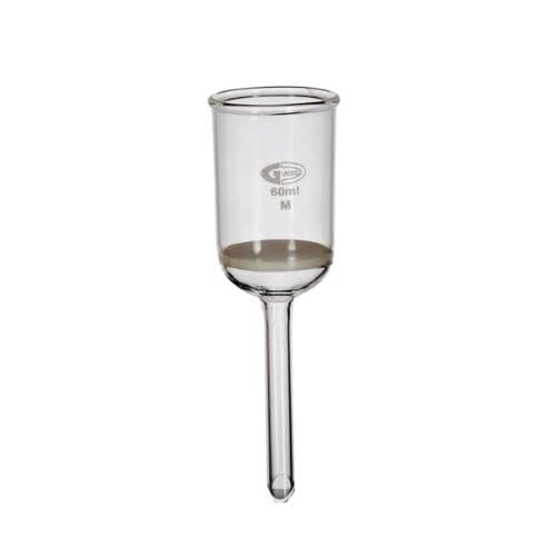 Made from borosilicate glass, the funnels include a beaded rim and a fritted disc with coarse, medium or fine porosity. Capacities range from 15mL to 60mL