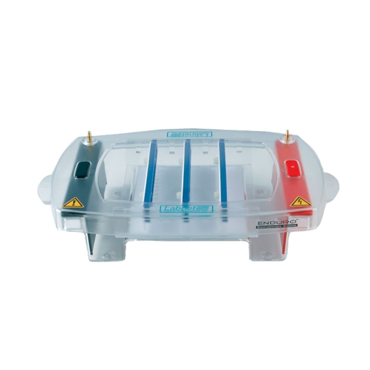 ENDURO™ Horizontal Gel Boxes have been designed for ease of use, safety and durability. A variety of sizes are available, from a mini gel electrophoresis system to a large maxi gel system that can accommodate as many as 450 samples in a single run. A wide range of accessories are available to customize your system, including multichannel compatible gel combs.
