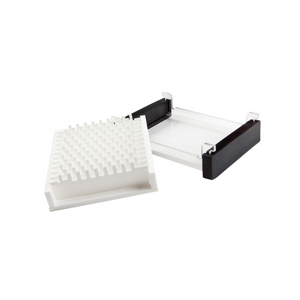 Casting gels for the ENDURO™ system is very easy. Simply snap the rubber gates onto the ends if the tray, place the comb in position and pour the gel - no taping is necessary. Slots on the sides of the gel trays hold the combs in place. The two piece combs are designed so that the teeth can be raised or lowered to vary the depth of the well within the gel. The supplied combs are 1.5 mm thick. Combs of other thicknesses are available separately. After the gel has hardened, the combs and gates are removed and the gel and tray placed in the gel box. Loading strips may be placed on the bottom of the gel box to aid in well visualization. Gel trays are UV transparent.
