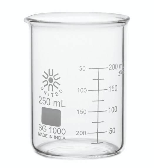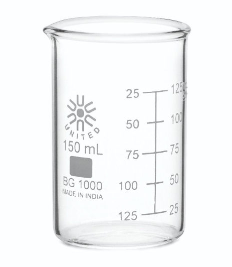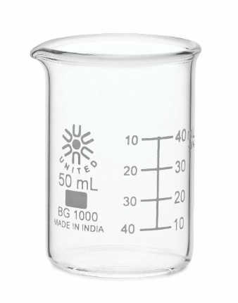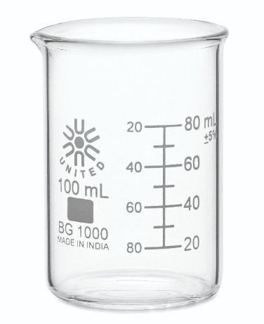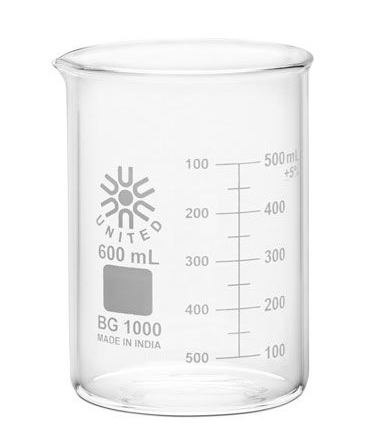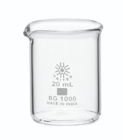 Beakers feature heavy and uniform wall thickness, spouts designed for easy pouring, and beaded tops. The 20ml and larger sizes also have a double-graduated metric scale and a marking area.