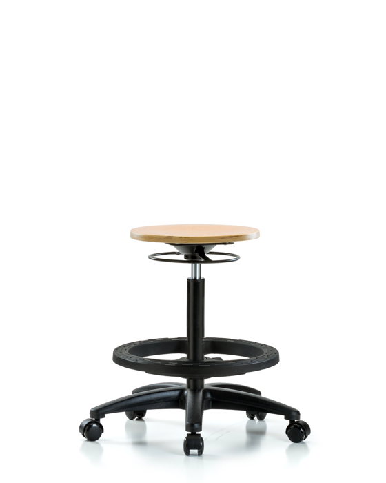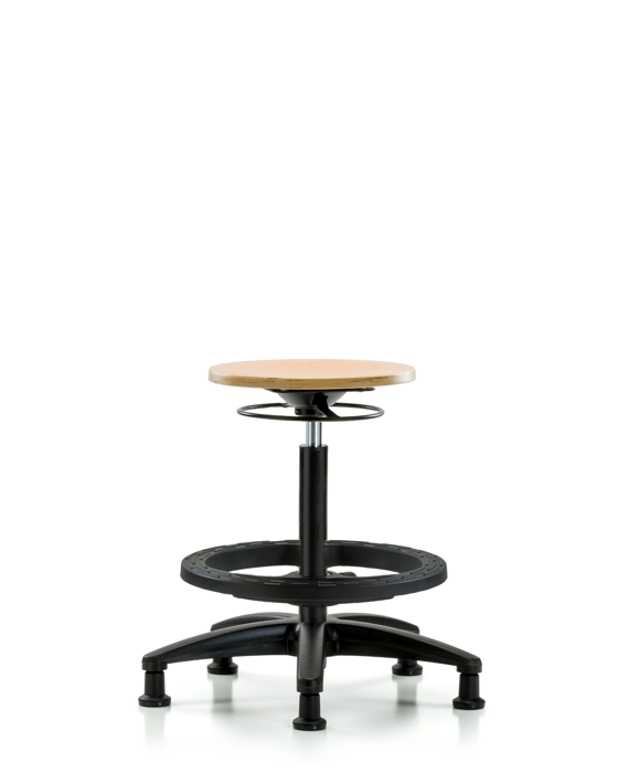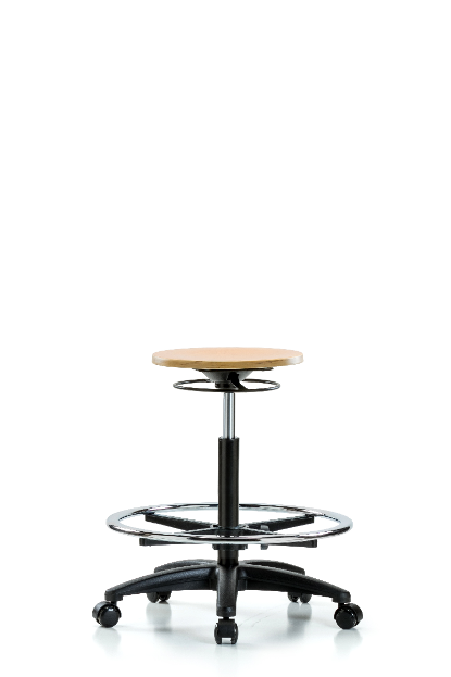 Our ergonomic wood stools are durable and offer a 360° all-around height adjustment ring that can be operated from any position. These desk height stools feature your choice of black rolling casters or black glides on a nylon-reinforced fiberglass base. Each ergonomic stool is backed by our 15-year warranty. This stool is also available in medium bench or desk height.