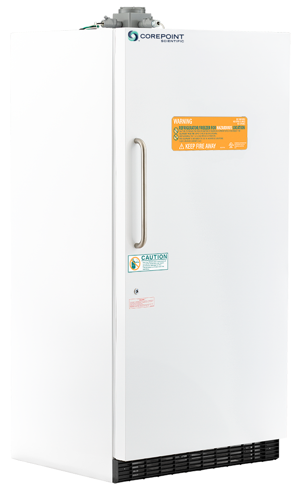 Hazardous Location Freezers meet NFPA and OSHA guidelines for Hazardous Location, Class 1, Division II, Groups C & D guidelines. All spark-generating electrical components and connections (compressor, thermostat) are isolated and sealed in vapor-proof enclosures. Electrical wiring is hardwired for additional safety measures. Freezers feature a mechanical thermostat sealed in UL listed explosion proof box.