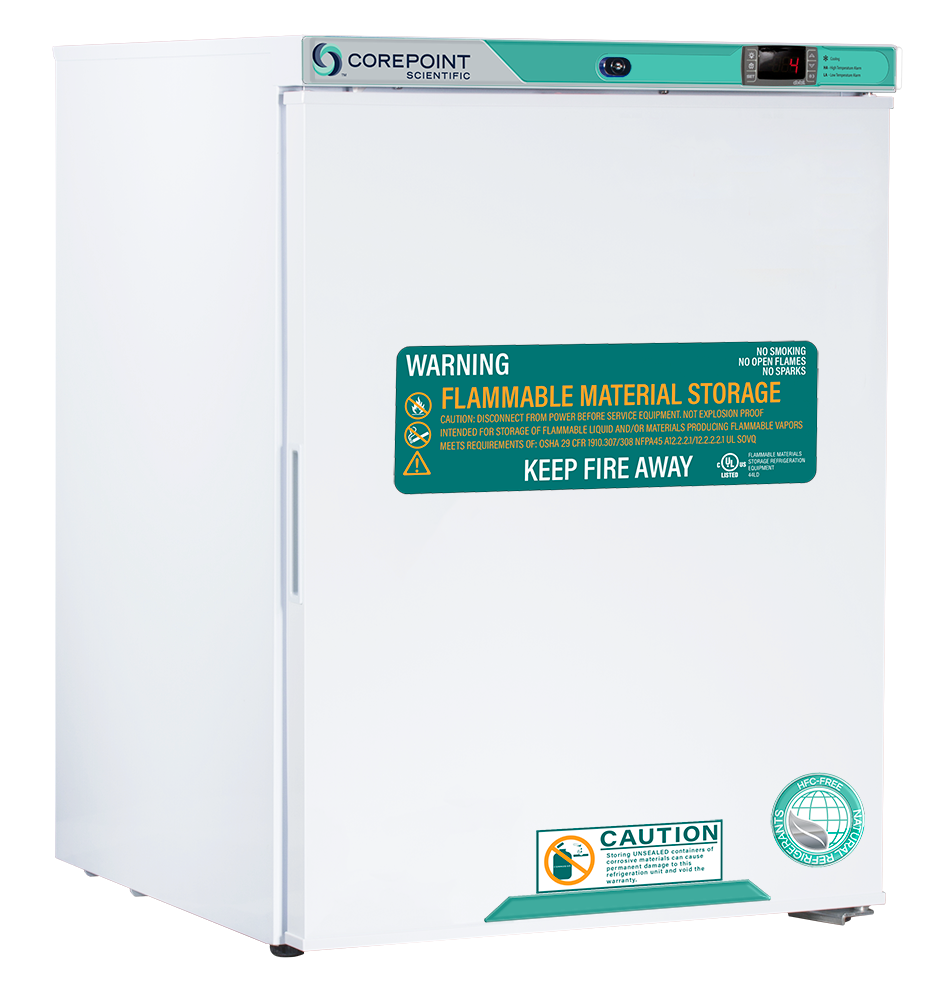 Corepoint Scientific White Diamond Series Undercounter Flammable Storage Refrigerator, Freestanding, Solid Door